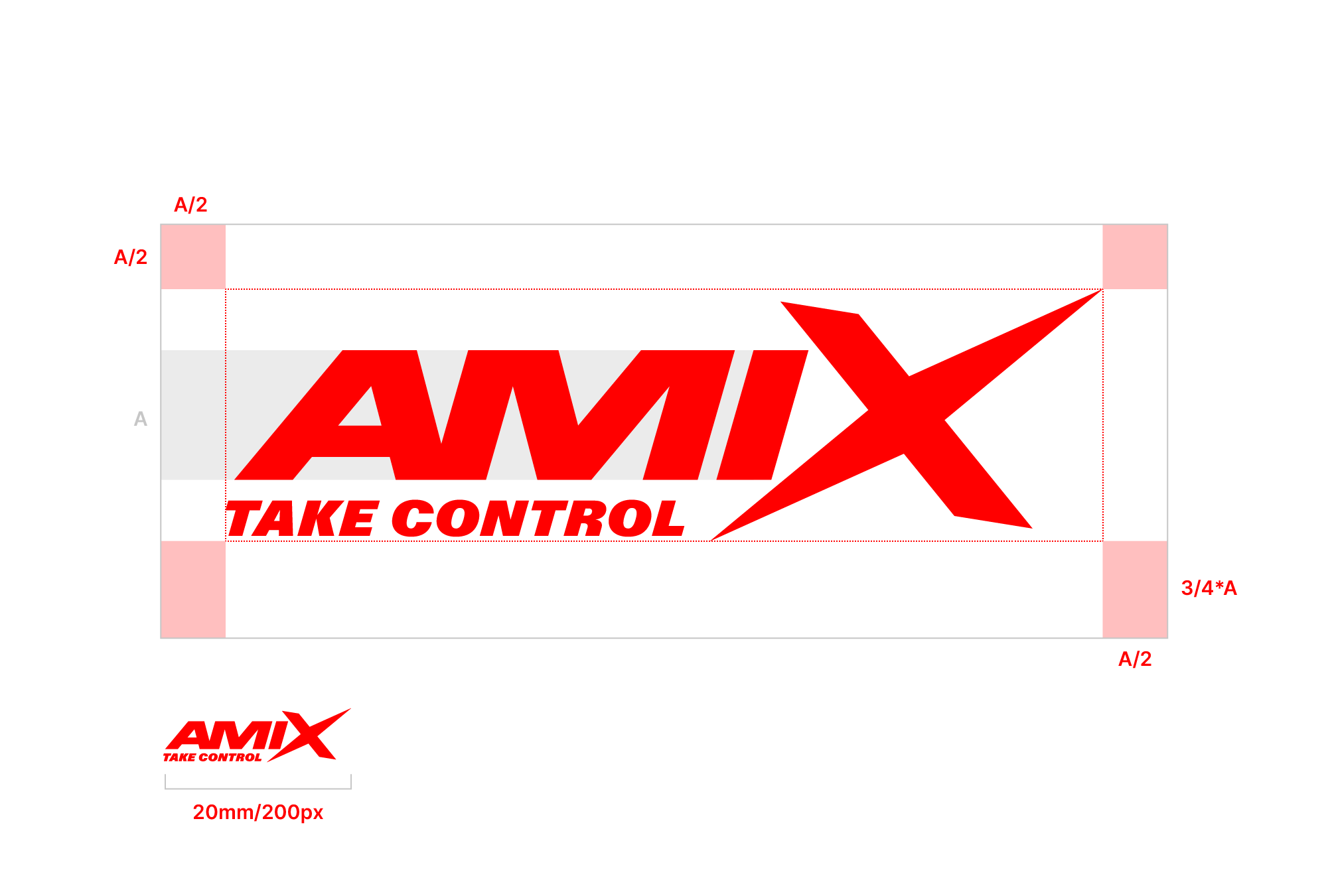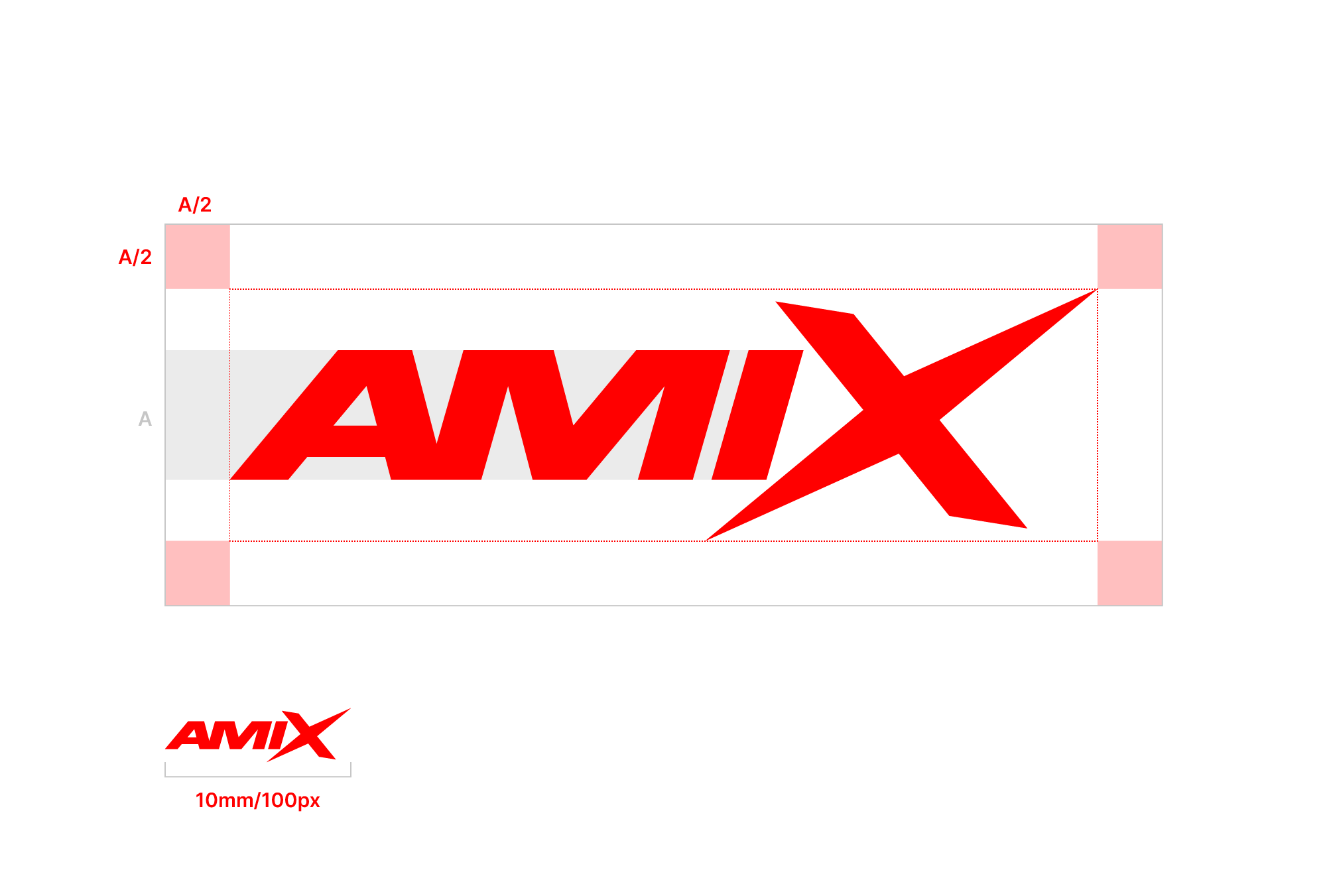 El área de respeto que se debe dejar siempre alrededor del logotipo equivale a A/2 en todos los lados excepto en el lado inferior, donde se deja 3/4 de A. Siendo A la altura de las letras «AMI».